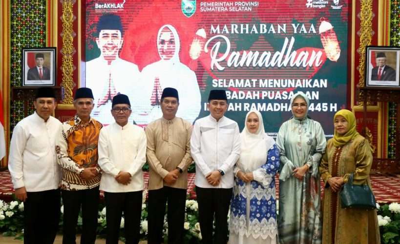 Palembang – Penjabat (Pj) Gubernur Sumatera Selatan (Sumsel) Agus Fatoni bersama Penjabat (Pj) Tim Penggerak (TP) Pemberdayaan dan Kesejahteraan Keluarga (PKK) Sumsel Tyas Fatoni menutup pengajian ramadhan 1445 Hijriah sebagai salah satu kegiatan rangkaian Safari Ramadhan tahun ini. Penutupan kegiatan ini diselenggarakan di Griya Agung, Palembang, Sumatera Selatan, Jumat (5/4/2024).