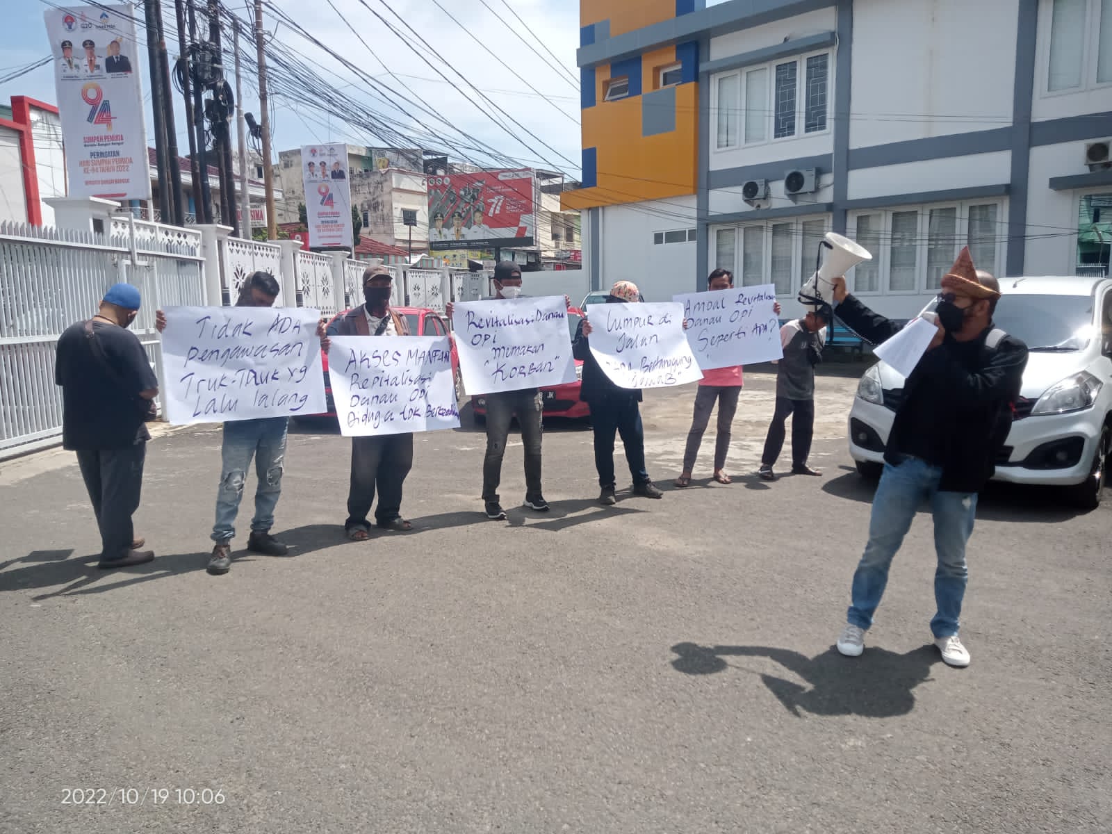 Massa aksi mempertanyakan amdal dan pertek lalin dari proyek revitalisasi danau opi dengan anggaran 18 M yang dikerjakan oleh PT Cahaya Sriwijaya Abadi